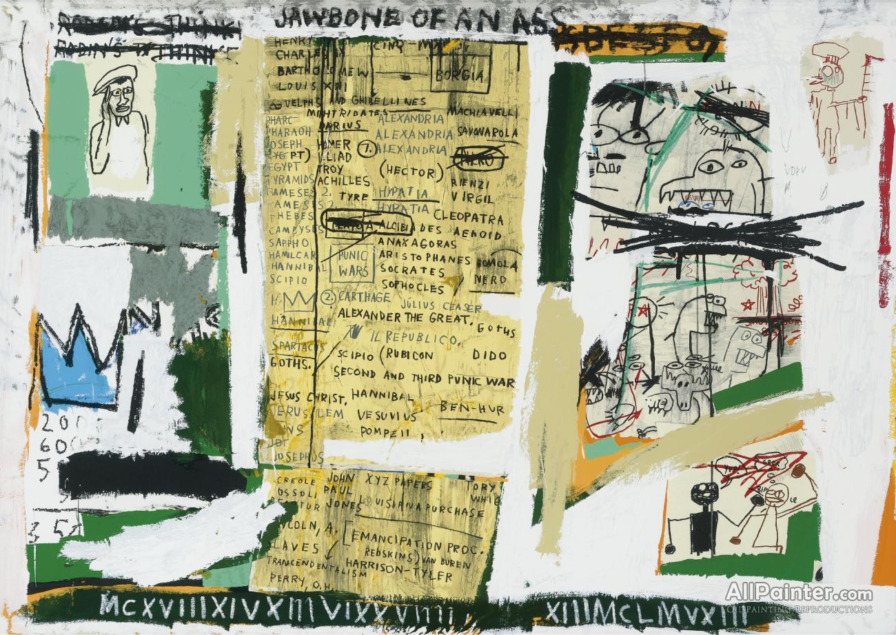 If you want to buy museum quality Jawbone Of An Ass, 1982 by Jean Michel Basquiat Oil Painting Reproductions at discount price, why not entrust us to paint it?We can offer Jean Michel Basquiat Jawbone Of An Ass, 1982 Oil Painting on canvas, Framed art, Wall Art, Gallery Wrap and Stretched Canvas. No printing or digital imaging techniques are used. - 100% hand painted oil painting on artist grade.